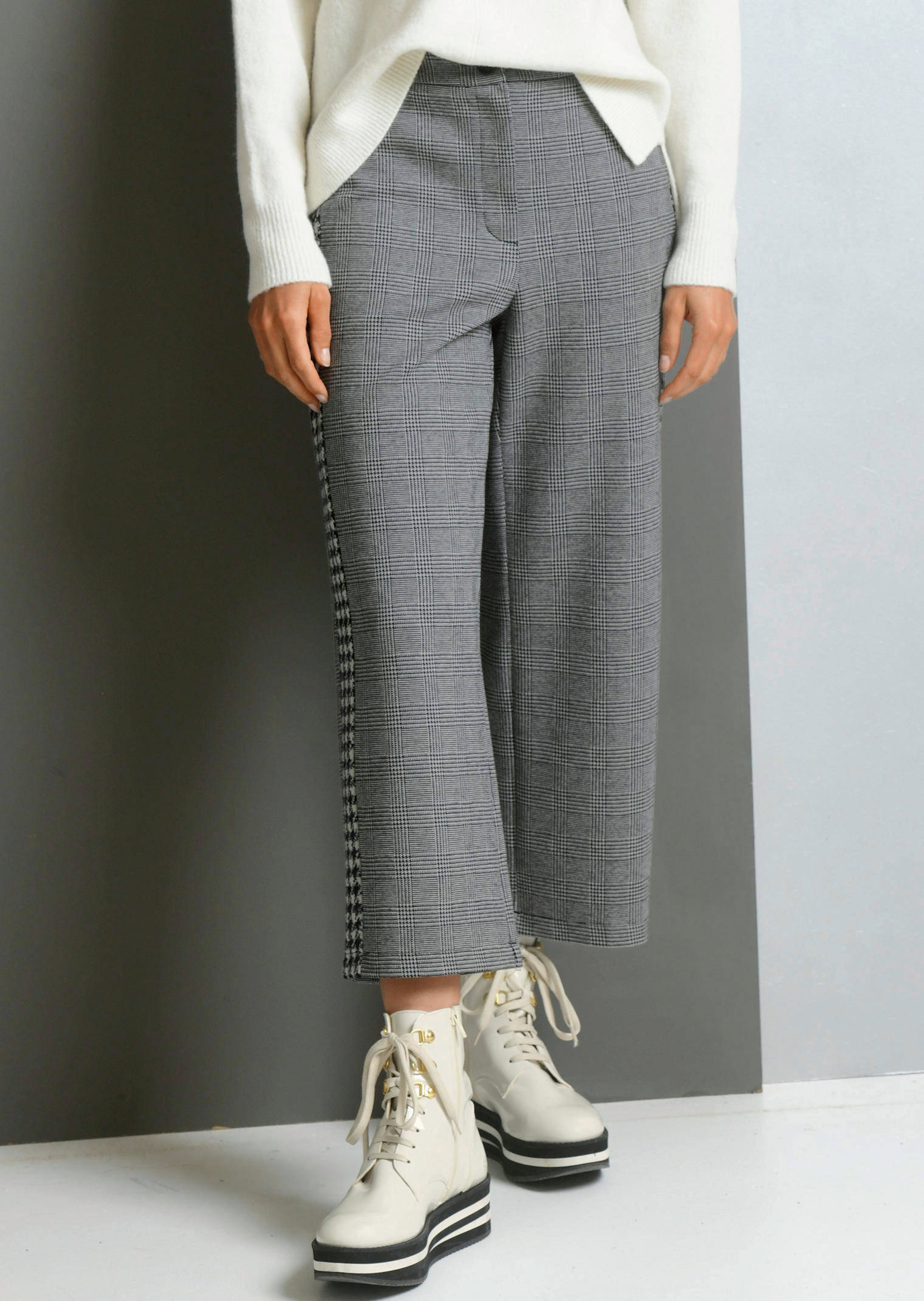 - Seitlicher Gallon im Hahnentrittmuster, Modisch weites Bein, Trageangenehme Ware, Ideal für den Alltag und das Büro, Hoher Tragekomfort