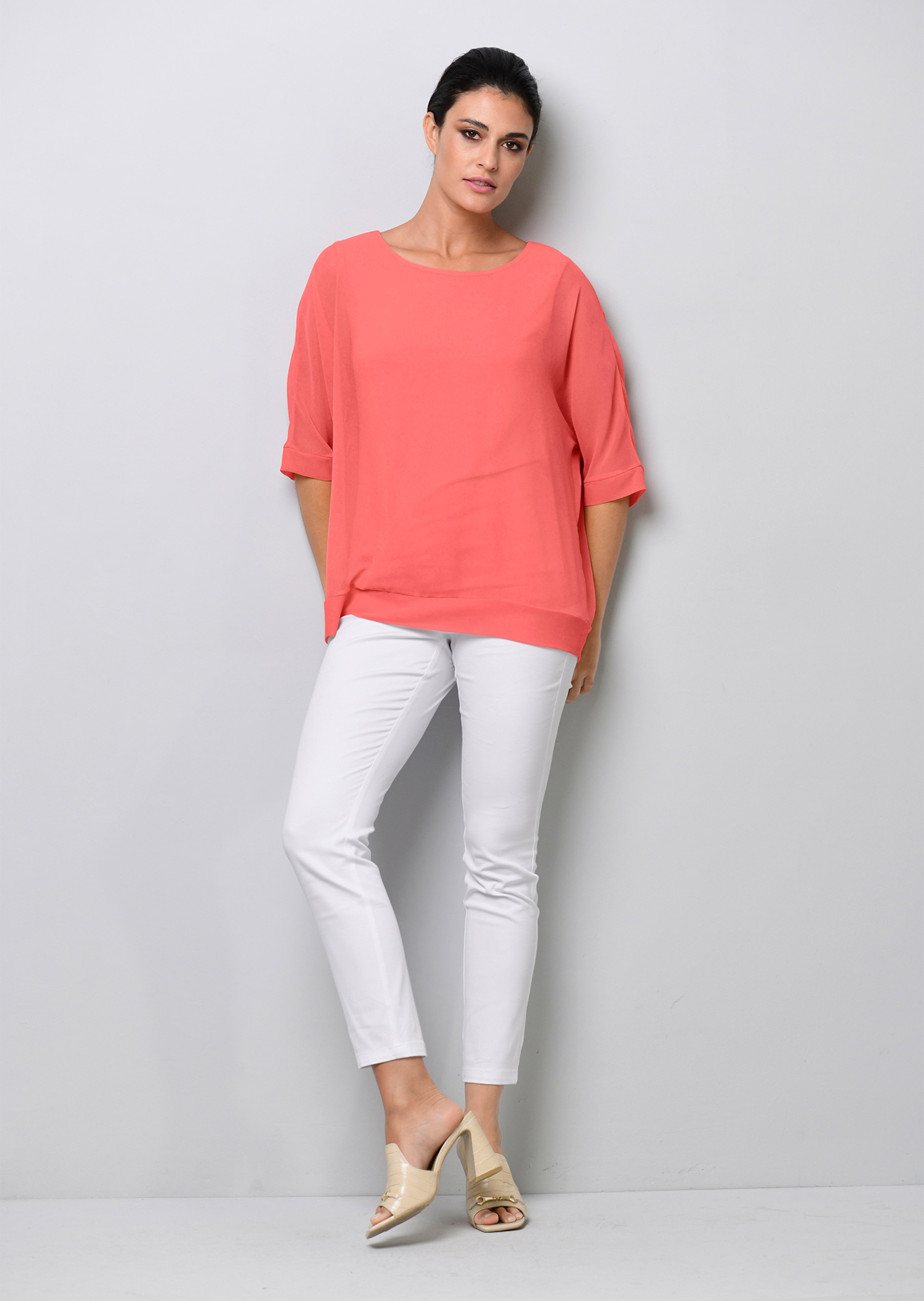 - Weich fließende Chiffon Lagenbluse mit Rundhalsausschnitt, Unterziehtop aus Jersey in der passenden Farbe, Halbarm und Saum mit breit abgestepptem Saum, Bequeme Schlupfform, Angesagter Material-Mix