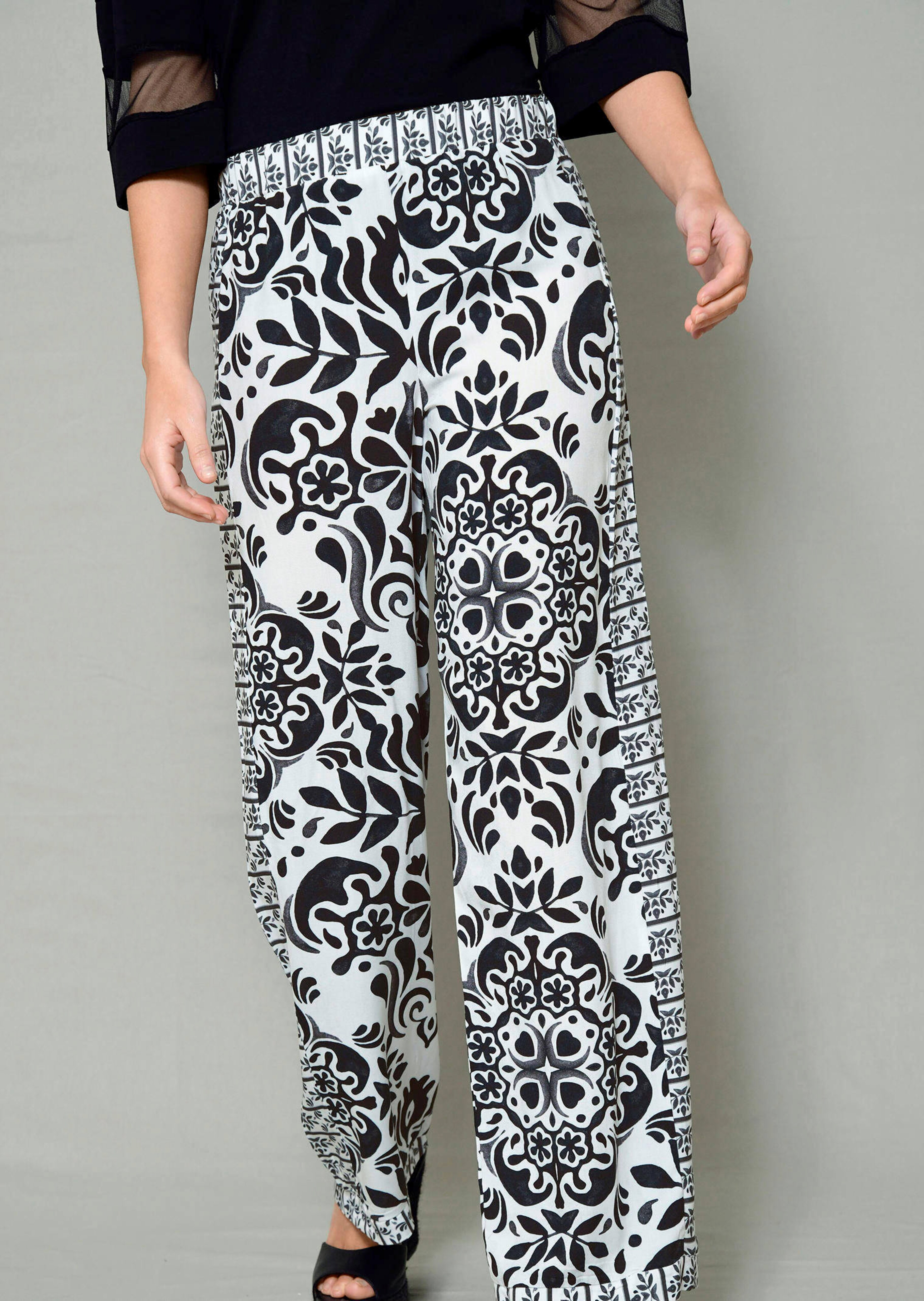 In jeder Situation gut aussehen – mit dieser Strandhose aus dem Hause Alba Moda. Ein besonders schönes Detail ist das grafische Muster. Für einen ausgestellten Schnitt steht die Passform Wide Leg. Da sie eine normale Leibhöhe hat, sitzt sie auf der Hüfte. Für einen angenehmen Sitz sorgt der Gummizug. Gefertigt aus Viskose. Und einen Style-Tipp haben wir noch für Sie: Wenn Sie Tasche und Schuhe zu Ihrem Outfit auswählen, müssen diese nicht zwangsläufig die gleiche Farbe haben. Wichtig ist, dass der Stil passt und die Farben harmonieren. Schön ist es auch, wenn sich ein Detail oder Muster der Kleidung in den Accessoires wiederfindet. Ein unverzichtbarer Modeklassiker! Tragen Sie für lässige Anlässe einfach ein Top dazu und falls es schicker sein sollte, können Sie zu der Strandhose wunderbar und unkompliziert eine Bluse kombinieren. Beininnenlänge in Größe 36 ca. 76 cm. Dies ist nur eines von zahlreichen Angeboten – bestellen Sie diese Strandhose von Alba Moda gleich hier und lassen Sie ihn sich ganz bequem nach Hause liefern.
