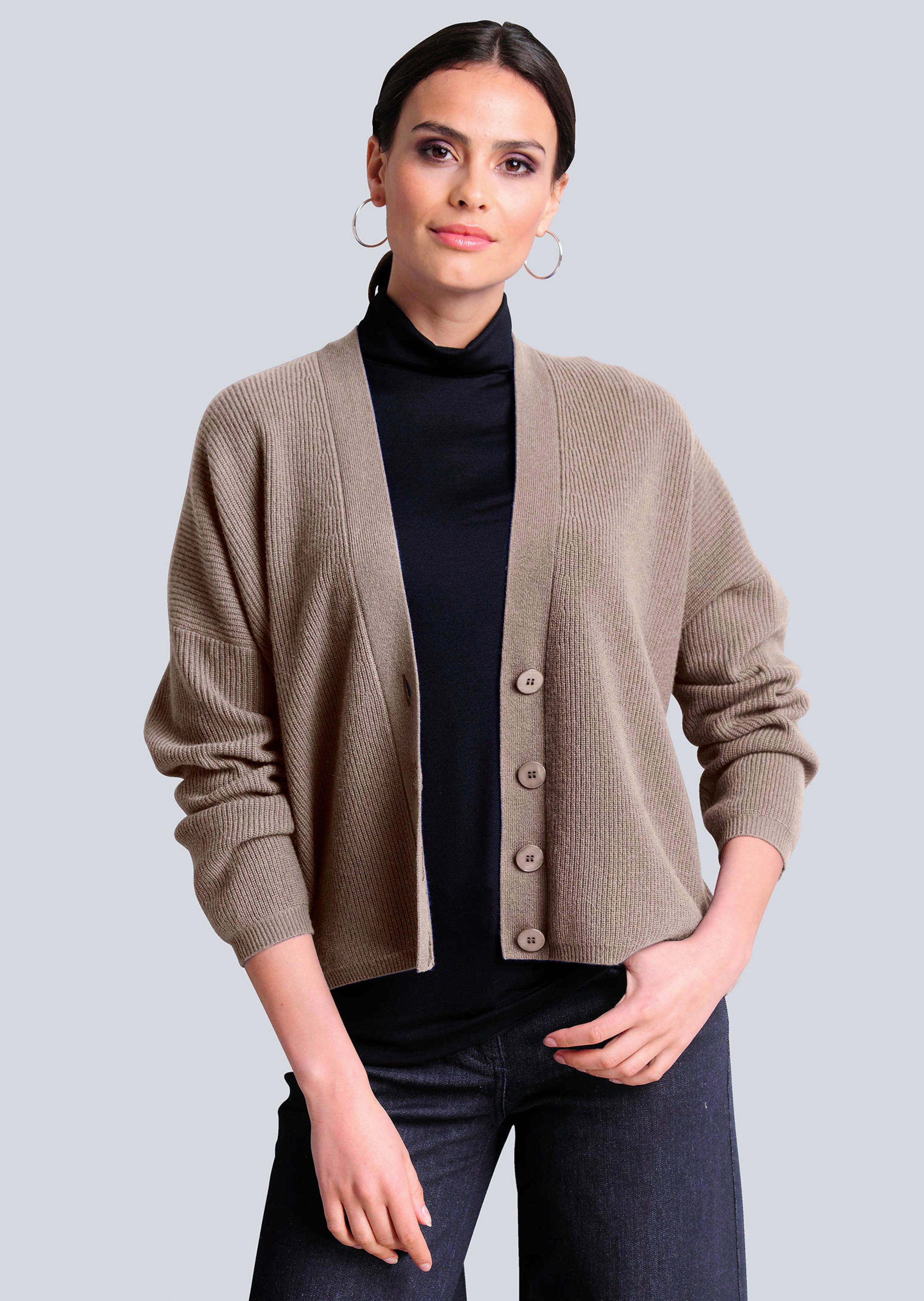 Erleben Sie Mode, die Spaß macht - zum Beispiel dieser Cardigan von Alba Moda. Er verfügt über einen V-Ausschnitt. Langer Ärmel mit geradem Abschluss. Gefertigt aus Kaschmir. In unserem Onlineshop haben Sie eine riesige Auswahl an Produkten – lassen Sie sich den Cardigan von Alba Moda ganz einfach nach Hause schicken!
