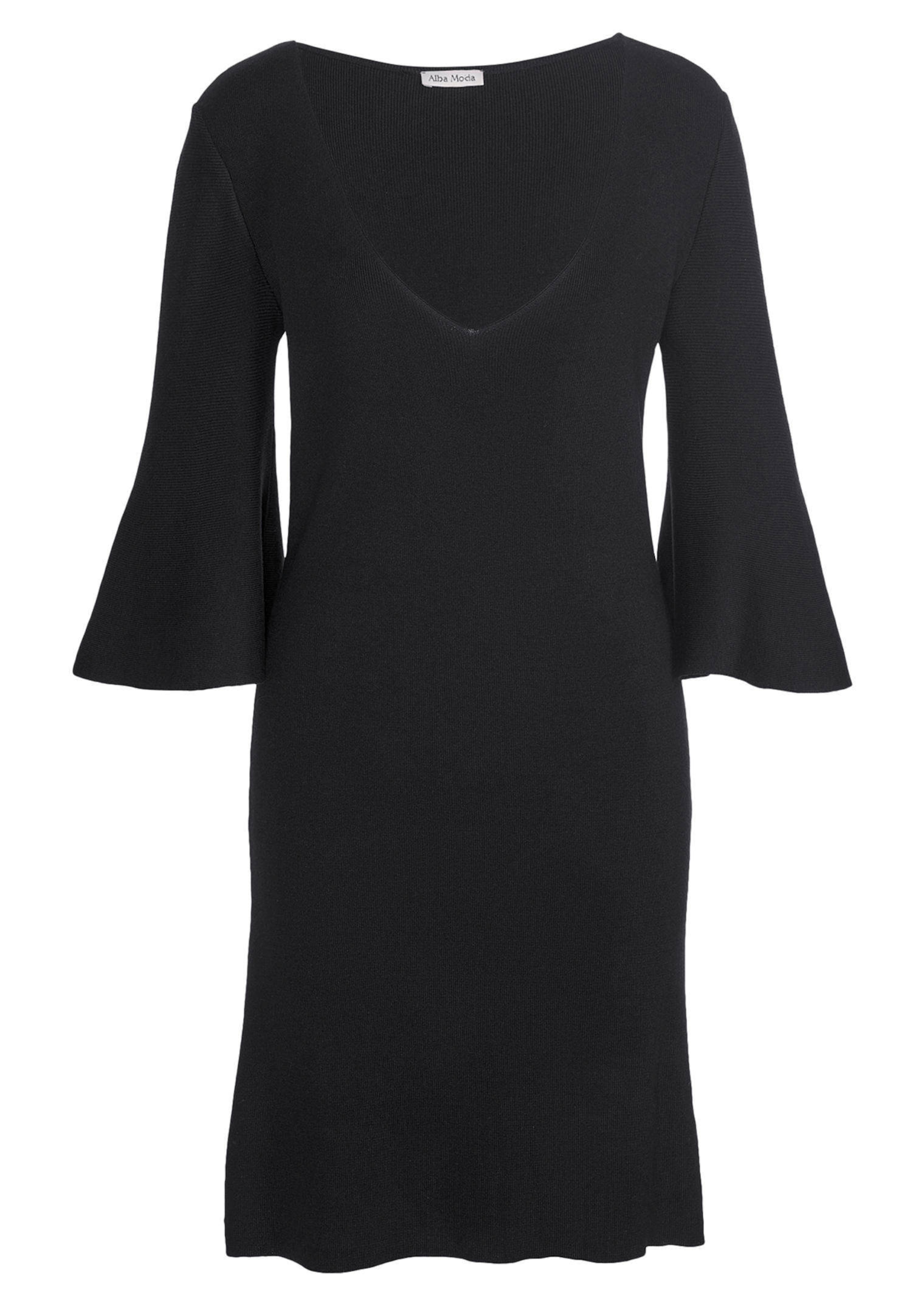 Kleid in Feinstrick mit Trompetenärmeln. In leicht ausgestellter Form. Tiefer abgerundeter V-Ausschnitt. In italienischer Länge. Länge in Gr. 38 ca. 96 cm.