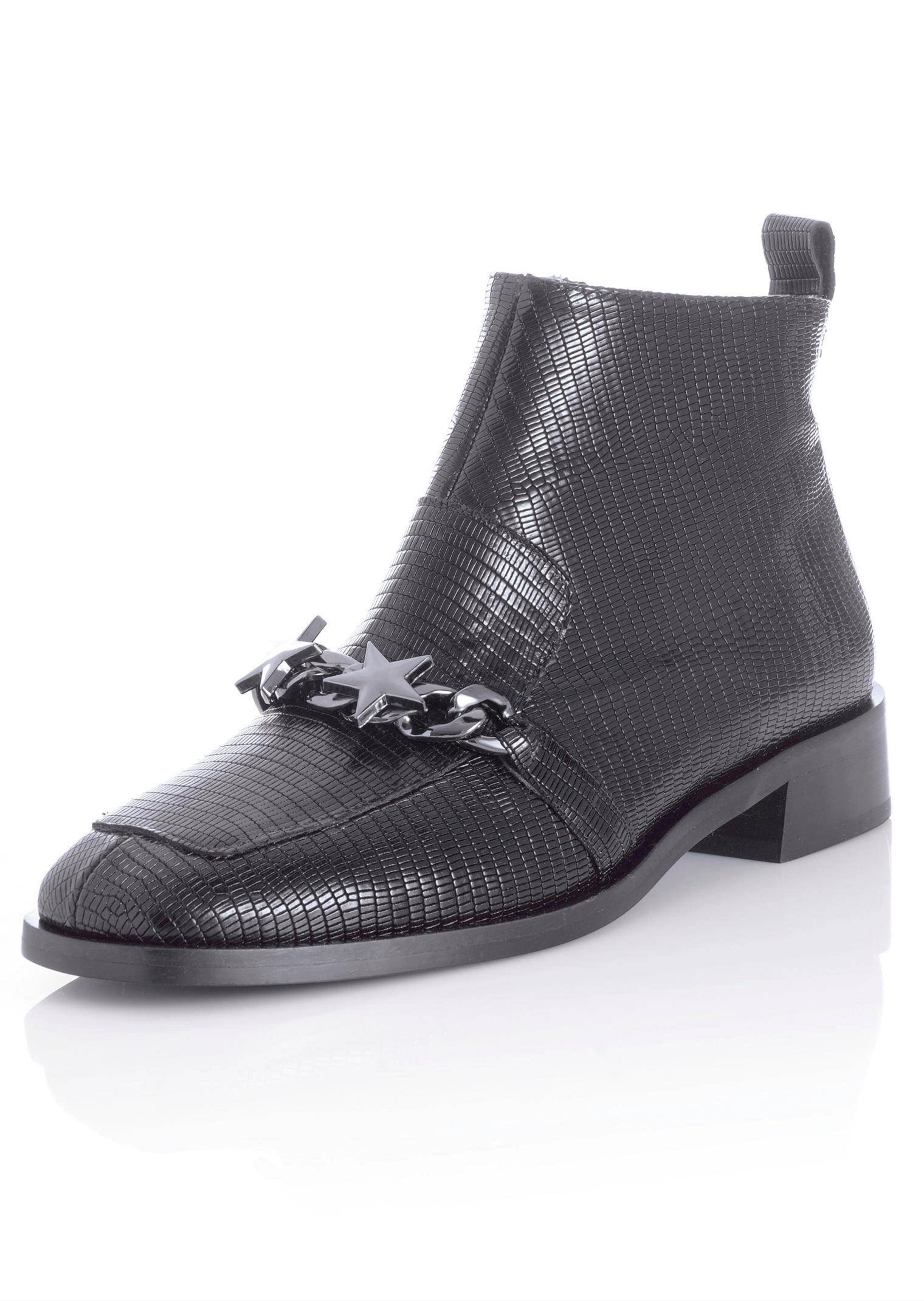 Diese Boots aus Rindsleder überzeugen in einer glänzenden Kroko-Optik. Die dekorative Gliederkette und die Sternmotive-Elemente in Gun-Metall runden Style gelungen ab. Der seitliche Reißverschluss unterstützt beim Ein- und Ausstieg. Blockabsatzhöhe in Gr. 37 ca. 3 cm. Futter und Decksohle aus Leder, Synthetiklaufsohle. Bestellen Sie sie bequem online im Alba Moda Shop!
