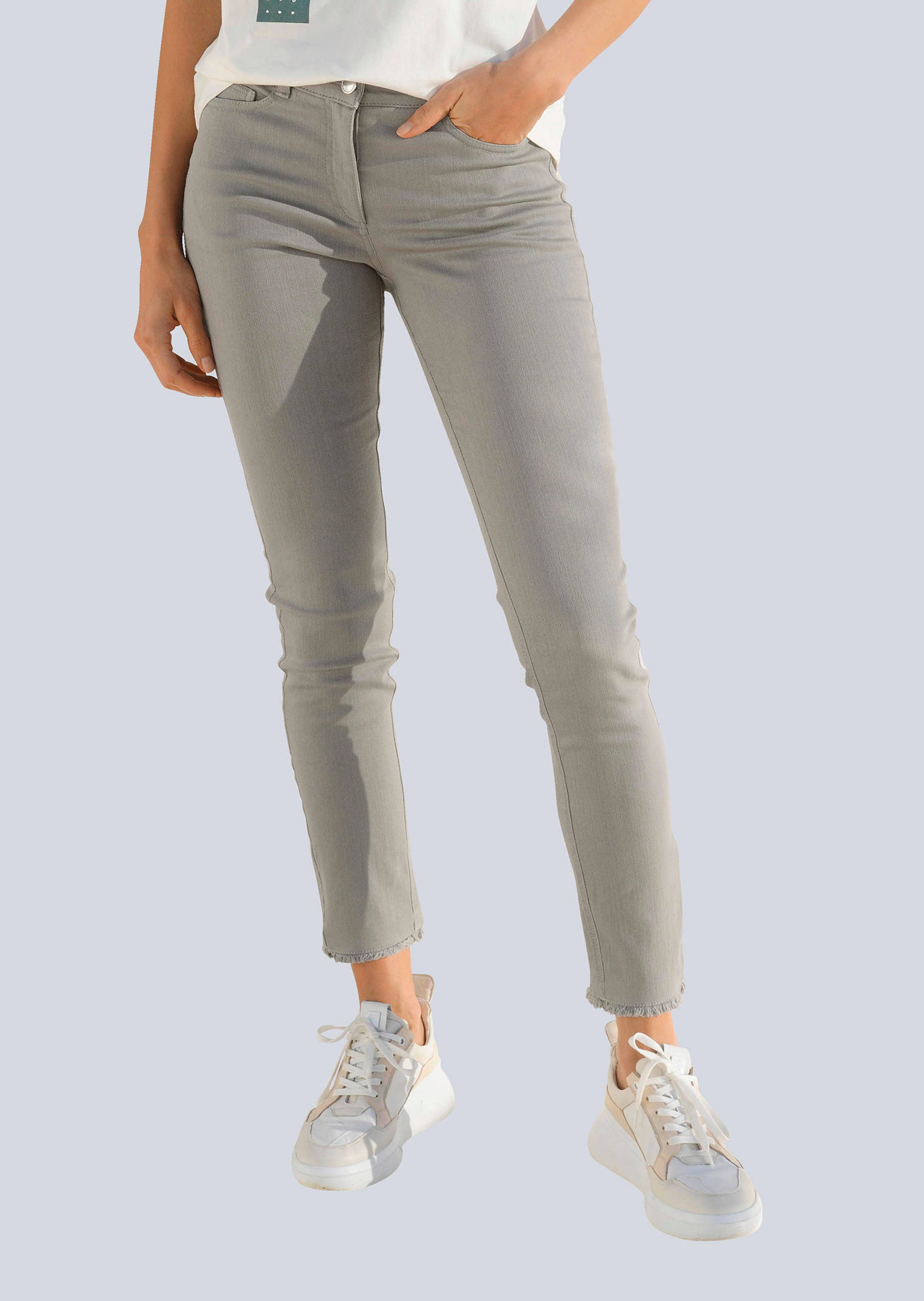 Entdecken Sie Ihren ganz individuellen Favoriten – wie zum Beispiel diese Comfortjeans von Alba Moda. Slim Fit steht eine körperbetonte Passform. Die Leibhöhe ist normal, das heißt, sie sitzt etwa auf Bauchnabelhöhe. Hergestellt aus Baumwolle. Ein unverzichtbarer Modeklassiker! Tragen Sie für lässige Anlässe einfach ein Top dazu und falls es schicker sein sollte, können Sie zu der Comfortjeans wunderbar und unkompliziert eine Bluse kombinieren. Beininnenlänge in Größe 38 ca. 72 cm. In unserem Onlineshop haben Sie eine riesige Auswahl an Produkten – lassen Sie sich die Comfortjeans von Alba Moda ganz einfach nach Hause schicken!