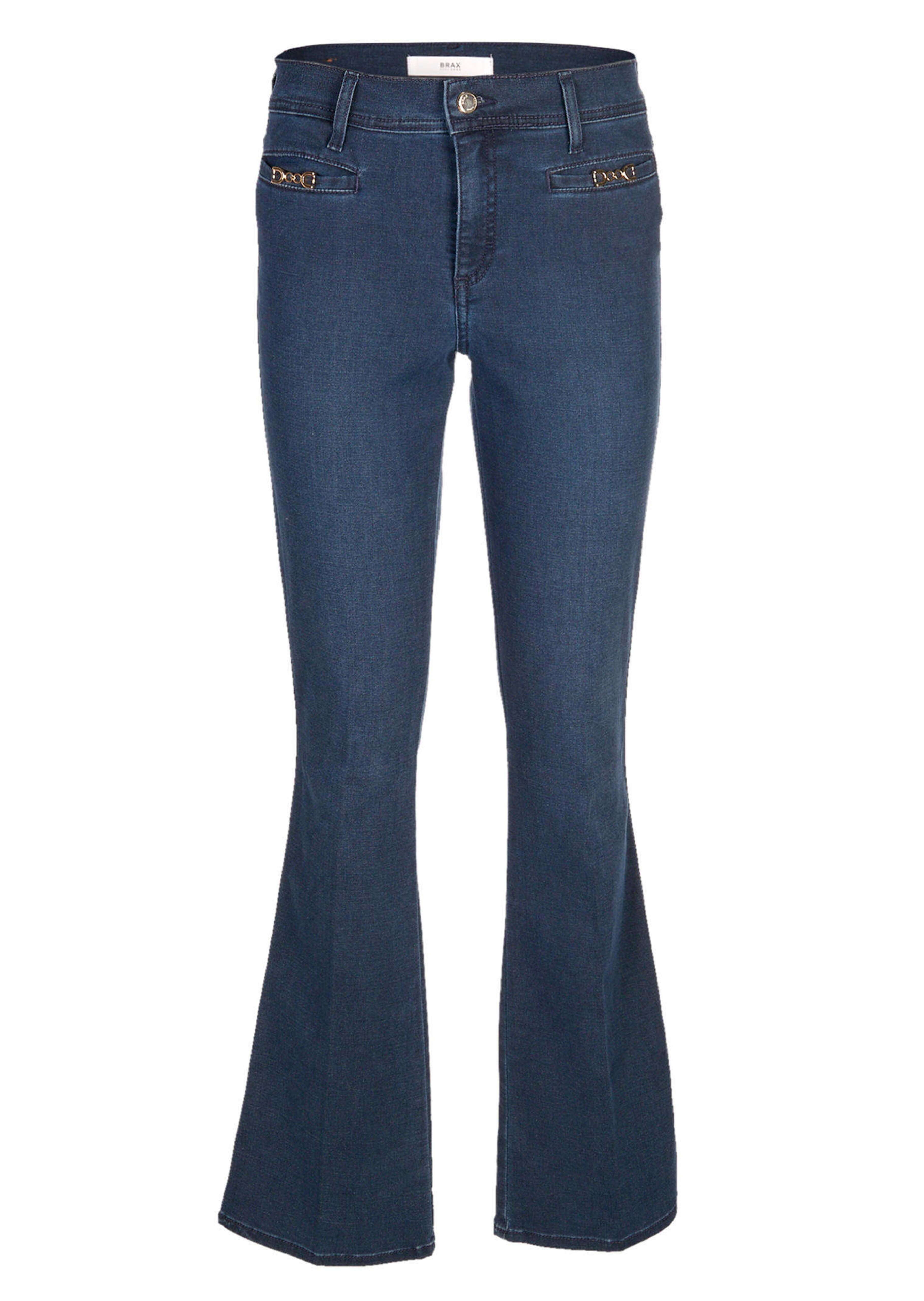Jeans "Shakira" von BRAX in Boot-Cut-Form – ein Modell, das nie aus der Mode kommt! Die ausgestellte Form sitzt bequem und verlängert die Beine optisch. Der klassische 4-Pocket-Style wird durch besondere Taschen neu interpretiert: Vorne sind die Leistentaschen mit metallischen Zierschnallen besetzt, hinten ist die Jeans mit aufgesetzten Taschen gearbeitet. Bequemer Sitz dank der elastischen Qualität. Mit Zip-Fly-Verschluss und Gürtelschlaufen am Bund. Innenbeinlänge in Gr. 38 ca. 82 cm. Styling-Tipp: Boot-Cut-Jeans eignen sich perfekt für hohe Schuhe – für absolute Endlos-Beine!