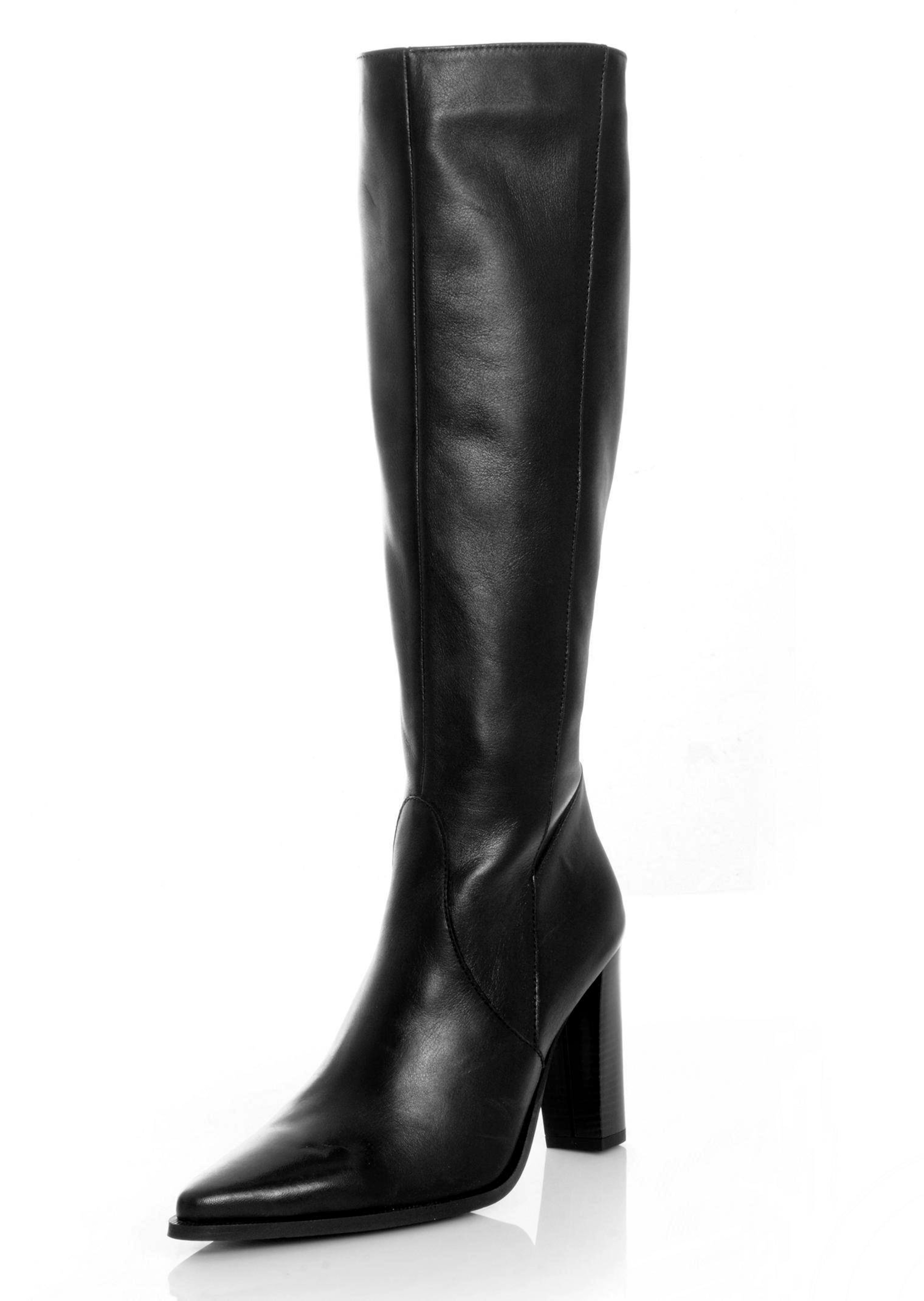 Erweitern Sie Ihren Schuhschrank mit den Stiefeln aus Rindsnappaleder in femininer, spitzer Form. Die Schuhe kommen mit einer attraktiven Nahtführung daher und überzeugen mit einem hohen Tragekomfort. Blockabsatzhöhe in Gr. 37 ca. 8,5 cm. Schafthöhe/ Schaftweite ca. 42/ 38 mm. Futter aus Textil und Leder, Lederdecksohle, thermoplastische Gummilaufsohle. Bestellen Sie die Stiefel bequem online in Ihren Lieblingsshop für Mode - bei Alba Moda!