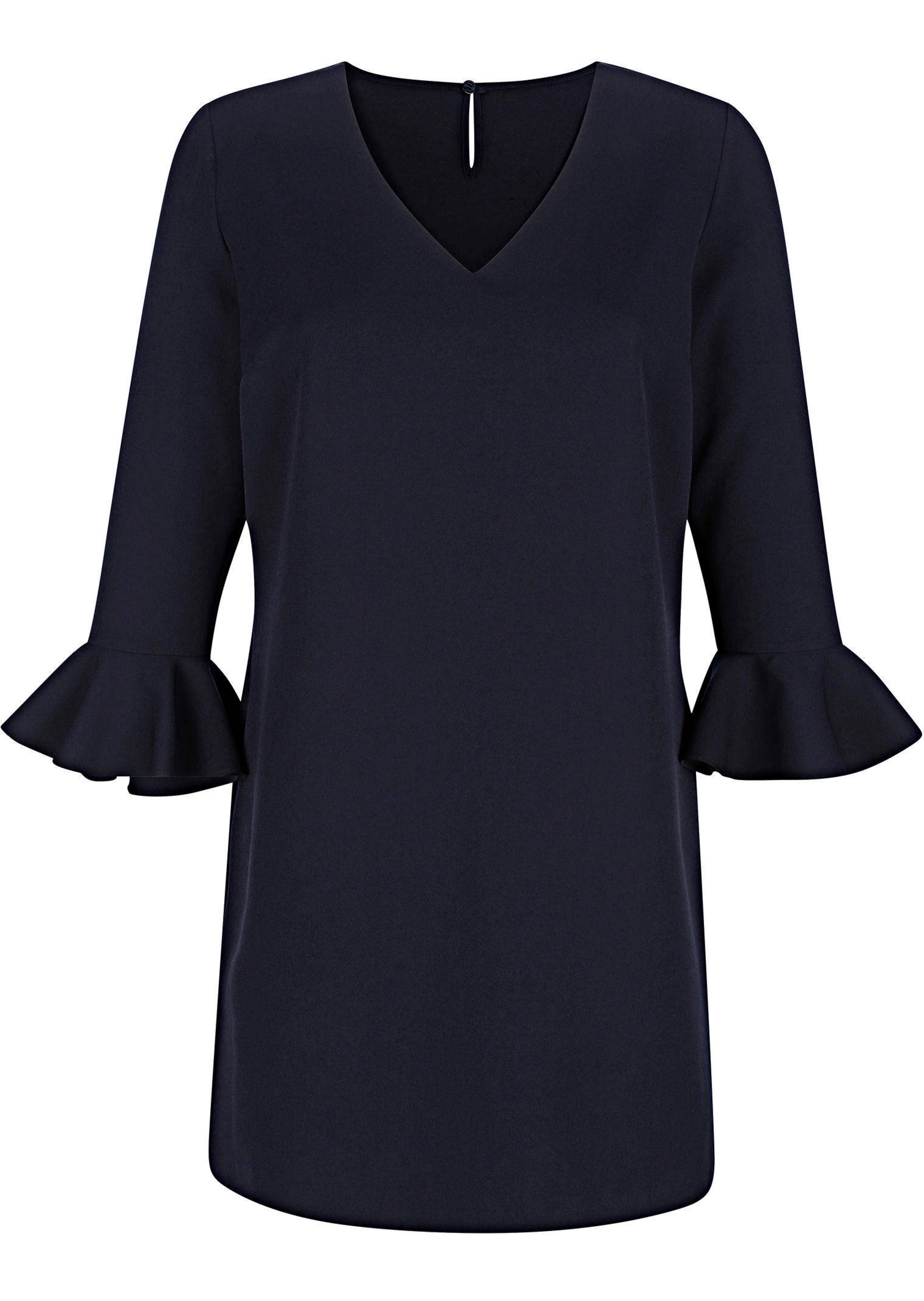 Mit dieser Tunika von Alba Moda sind Ihnen die Komplimente sicher. Die Volants sind ein echtes Highlight. Sie hat einen V-Ausschnitt. Außerdem ist sie gerade geschnitten. 3/4-langer Ärmel mit Volants. Gefertigt aus pflegeleichtem Material. Übrigens: Ein Outfit ist natürlich erst fertig, wenn auch Schuhe und Tasche passen. Zwei Dinge sollten hier harmonieren: Farbe und Stil. Tragen Sie also zum Beispiel Pumps, ist auch eine elegante Handtasche gefragt. Die Farbe muss zwar nicht mehr wie früher genau die selbe sein, "beißen" sollten sie sich aber auch nicht. Diese Tunika von Alba Moda ist nur noch wenige Klicks von Ihrem Kleiderschrank entfernt – bestellen Sie ihn am besten gleich jetzt!