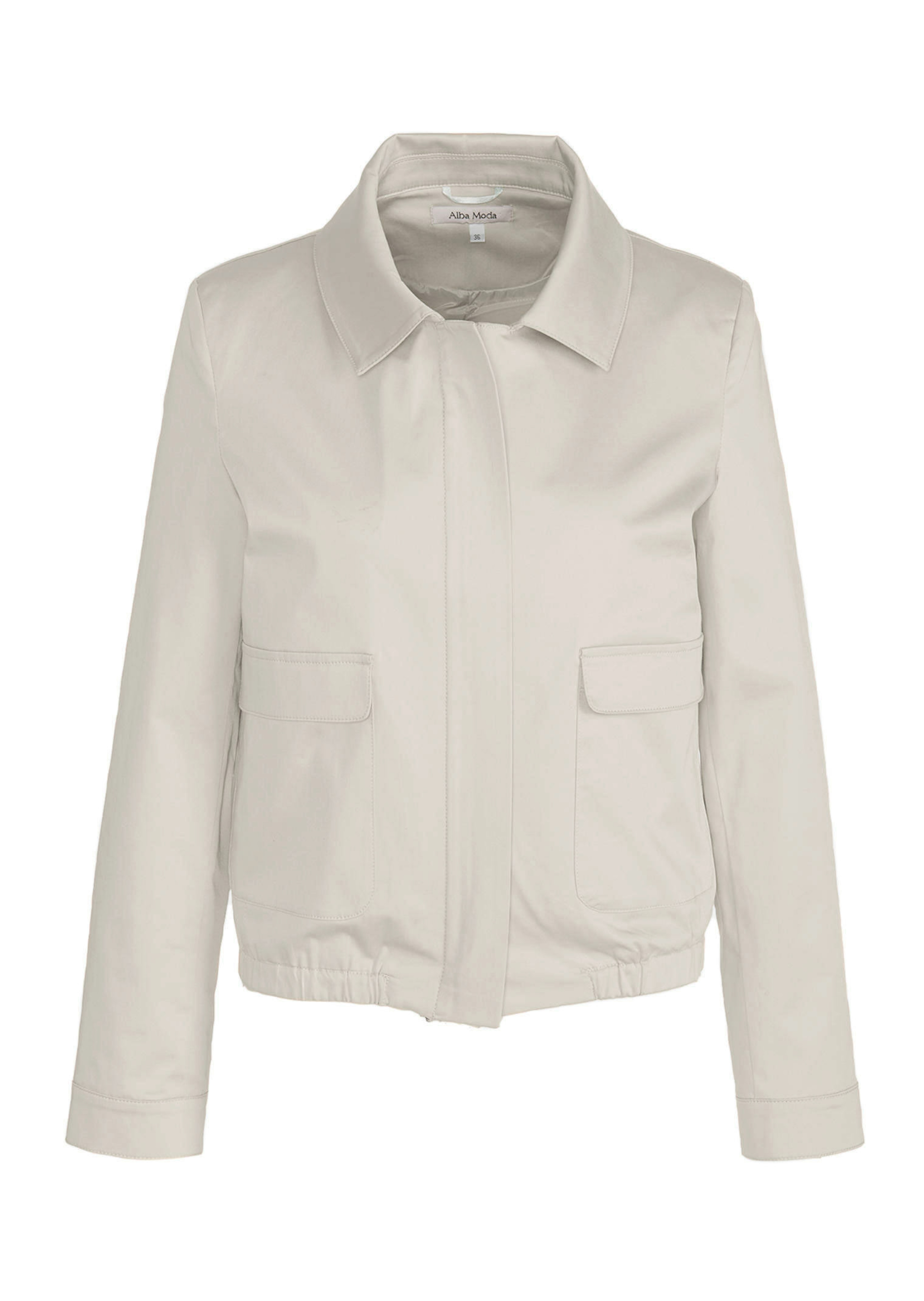 Blouson in Cropped-Form. Satinierte Qualität. Mit verdecktem Reißverschluss und großen Pattentaschen. Offene Manschetten zum Krempeln. Gummibund im Saum. Gefüttert. Länge in Gr. 38 ca. 56 cm.