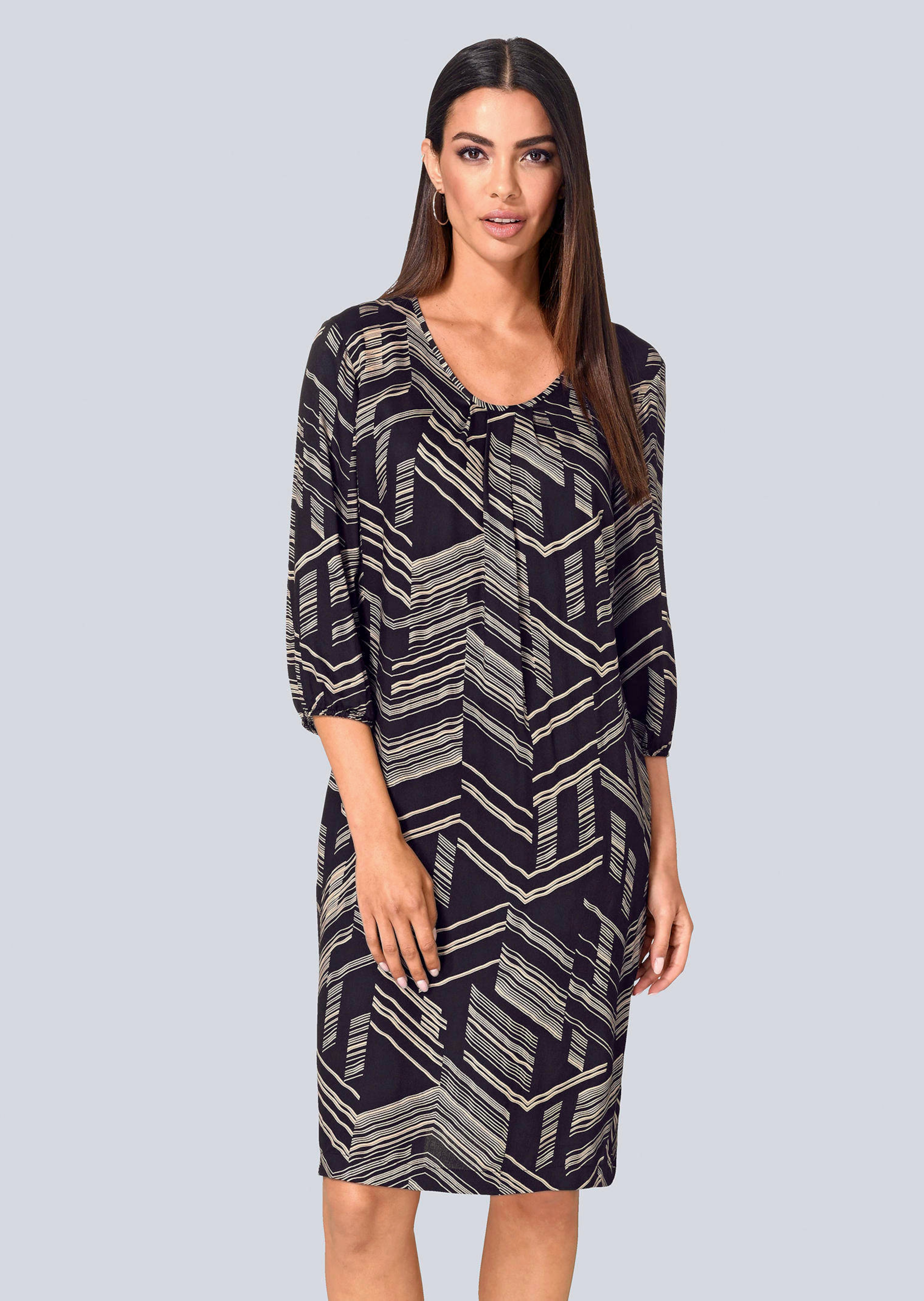 Mit diesem Druckkleid von Alba Moda sind Ihnen die Komplimente sicher. Besonders hervorzuheben ist das grafische Muster. Es besitzt einen V-Ausschnitt. Es ist gerade geschnitten. 3/4-langer Ärmel mit geradem Abschluss. Mit Eingrifftaschen. Verarbeitet wurde pflegeleichtes Material und Viskose. Bestellen Sie das Druckkleid von Alba Moda bequem in unserem Onlineshop und Ihr neues Lieblingsteil ist schon in Kürze bei Ihnen zu Hause!