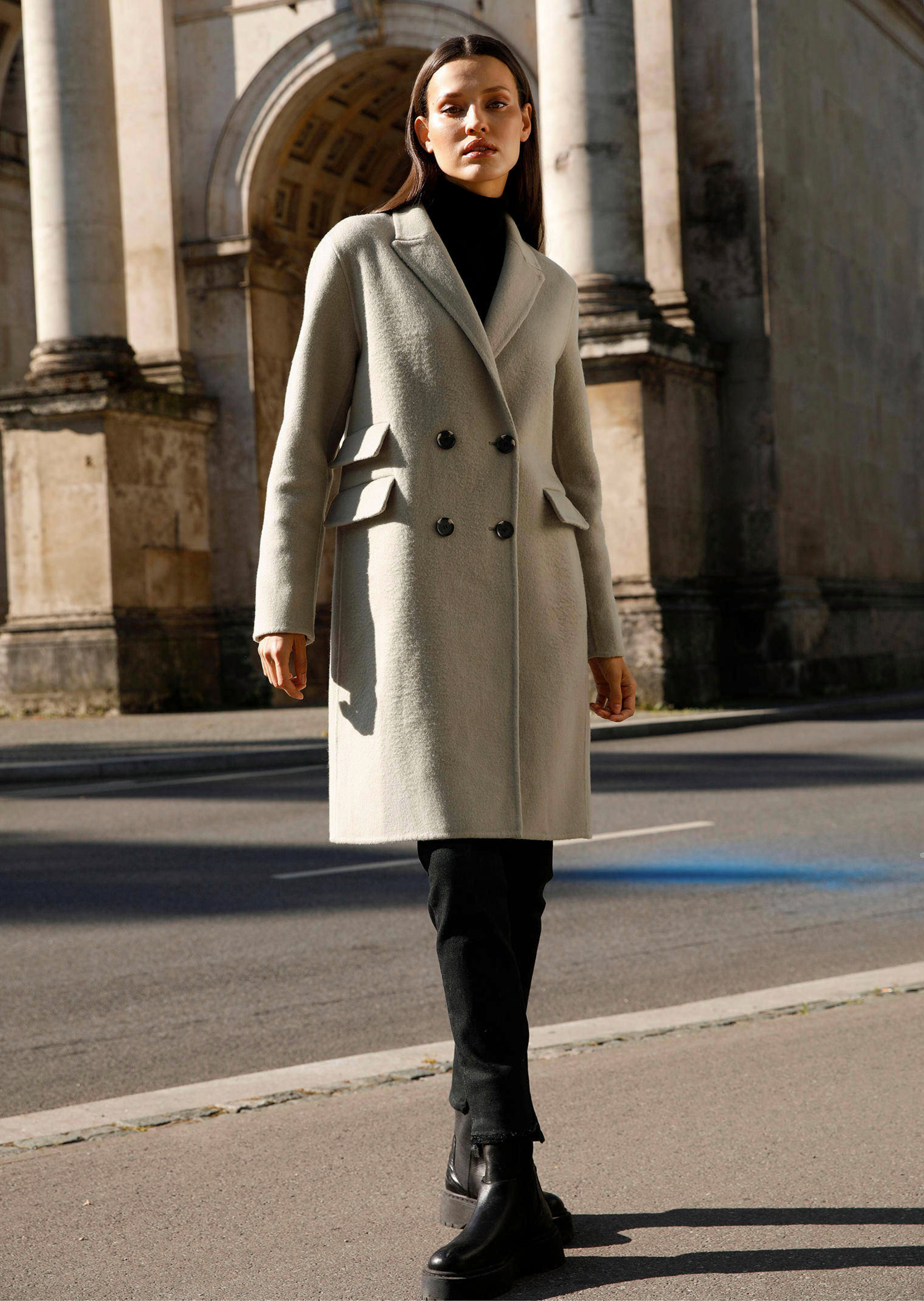 • Wollmantel mit Reverskragen und mit Doppelreihiger Knopfleiste, Pattentaschen im Vorderteil, Ungefüttert, Ideal für die Übergangszeit, Darf in keinem Kleiderschrank fehlen