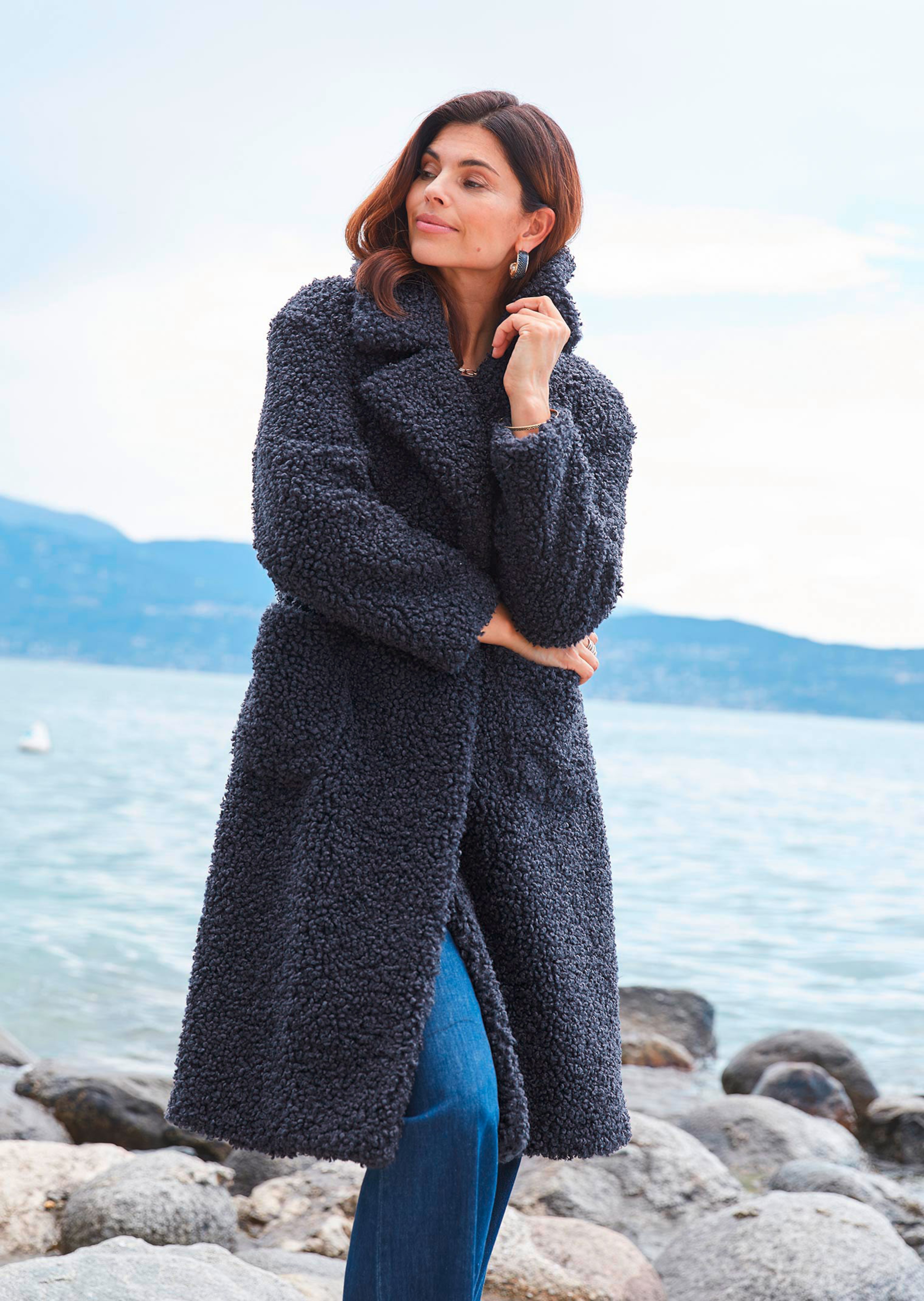 Mantel von RICH & ROYAL in Teddy-Optik. Der Curly Effekt verleiht ihm den besonderen Look – ein echtes Wohlfühlmodell mit Kuschel-Faktor! Der klassische 2-Reiher ist mit Reverskragen und aufgesetzten Taschen gearbeitet und vollständig gefüttert. Länge in Gr. 36 ca. 102 cm. Styling-Tipp: Der Mantel bringt Sie zuverlässig durch die kalte Jahreszeit und verleiht klassischen Jeans & T-Shirt-Looks ein modisches Update!