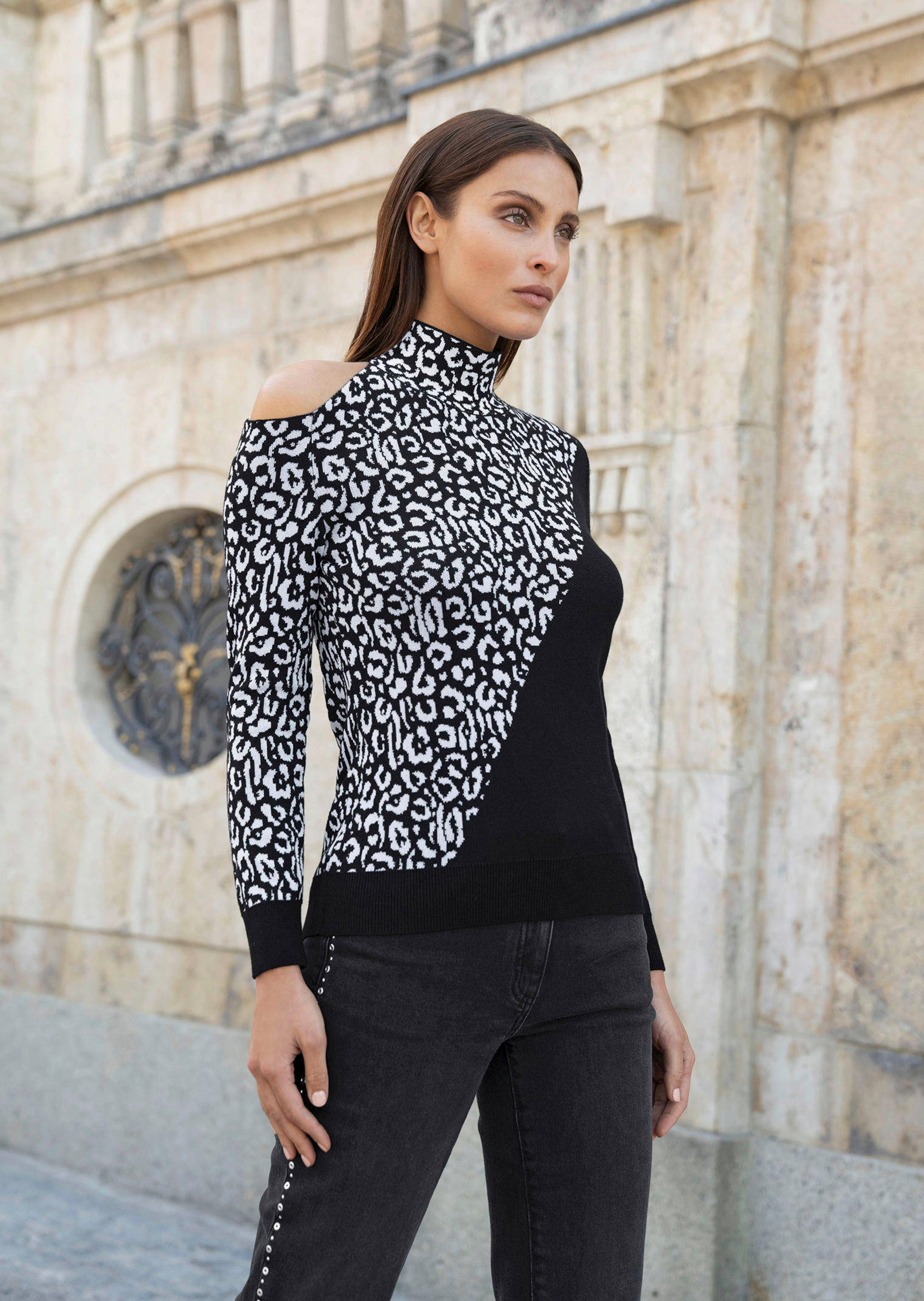 - Animaldessin in Jacquardstrick, Cut-Out Detail, Hoher Stehkragen, Pflegeleichte Qualität, Idealer Freizeitbegleiter