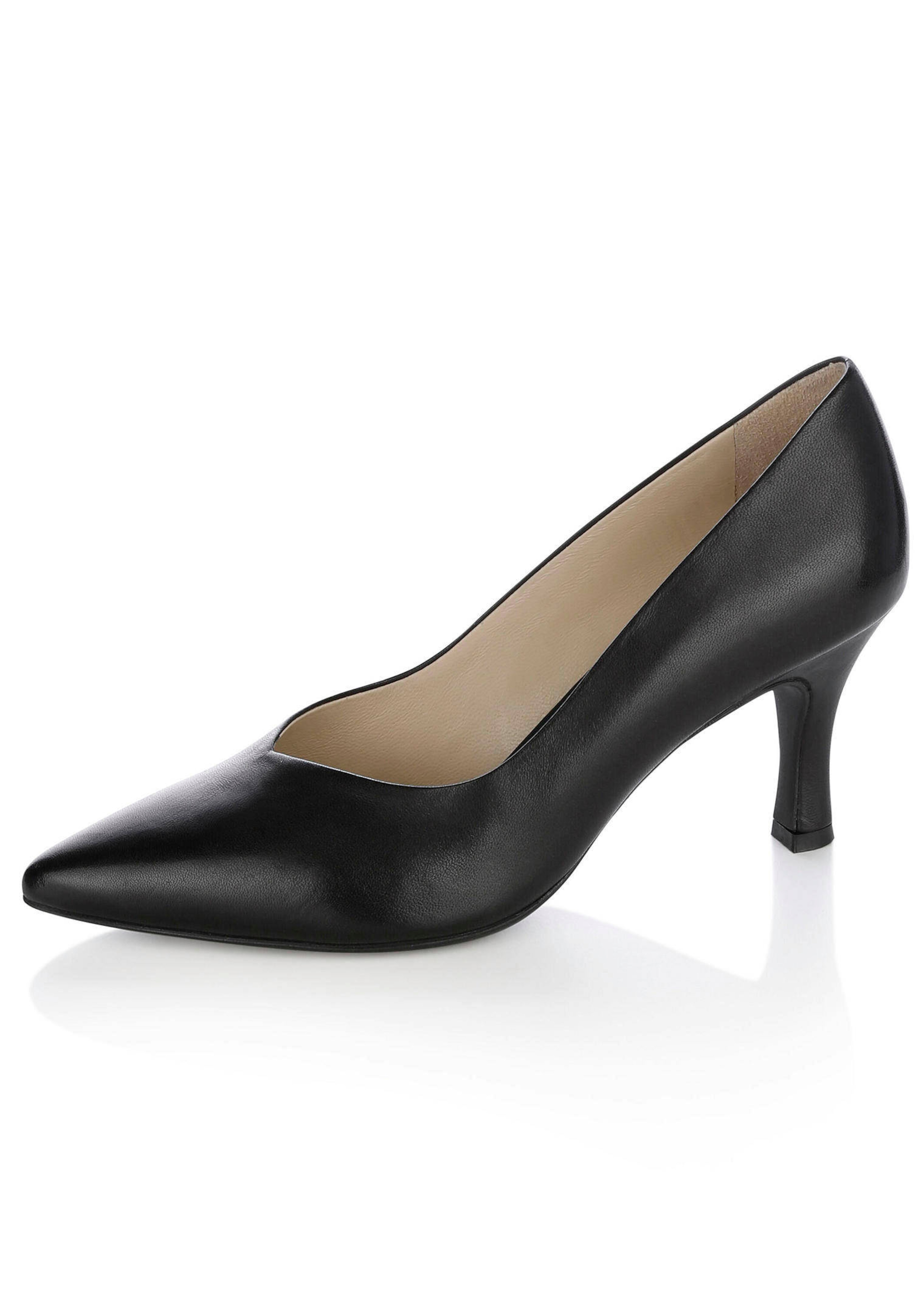 Feminin und stilsicher: mit diesen Hochfrontpumps von Alba Modaaus Glattleder ziehen Sie die Blicke auf sich. Mit und Druckentlastung. Pfennigabsatz mit einer Höhe von 7,5 cm. Guten Halt garantiert die Sohle aus Synthetikmaterial. Die Decksohle ist aus Leder. Dieses Modell hat glatte Sohle. Für einen normalen Fuß geschnitten. Zum Öffnen und Schließen haben sie einen Schlupf. Diese Schuhe entsprechen dem Größensystem: Britisch (UK).