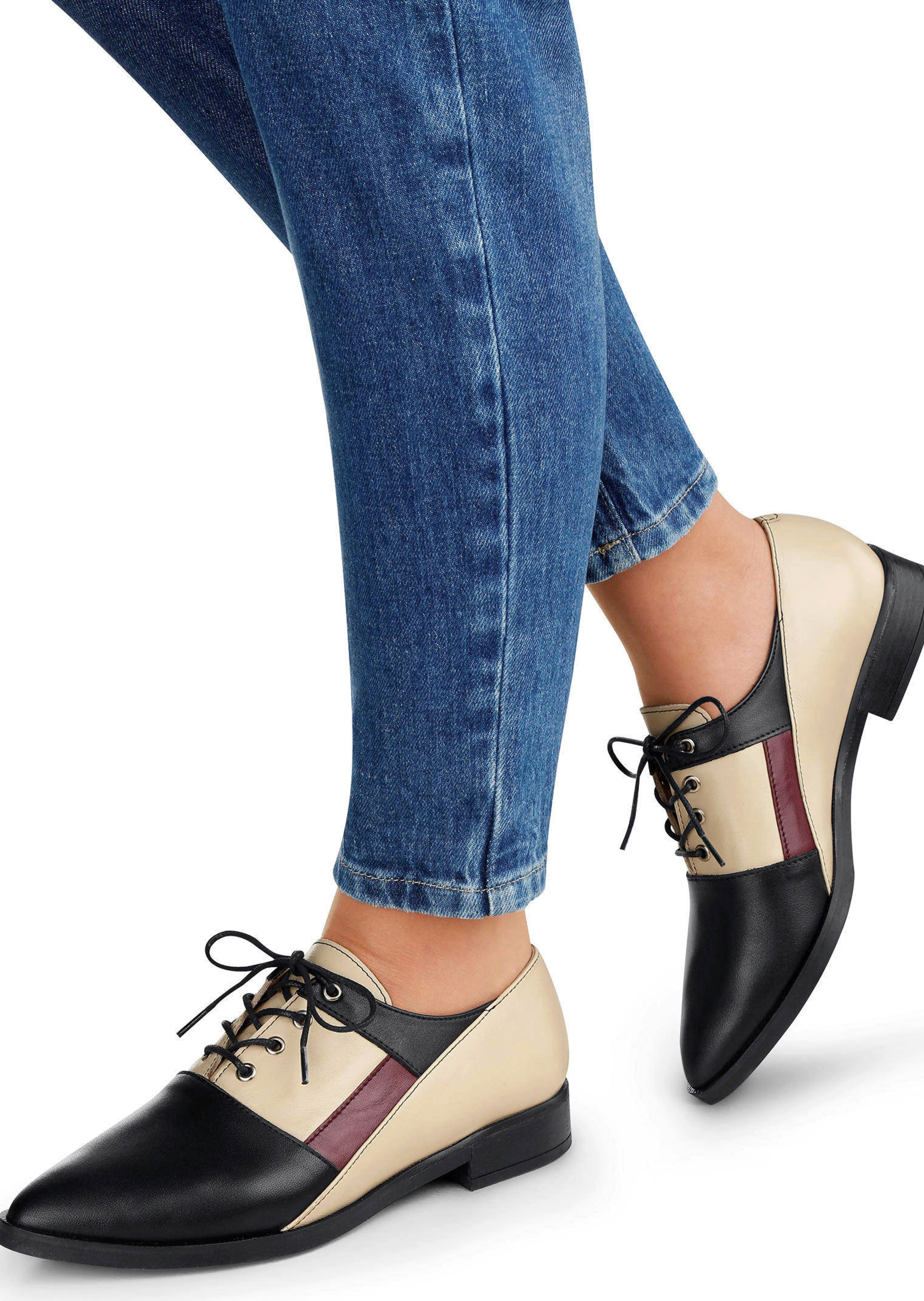 Diese Schnürschuhe im modernen Look von Alba Moda sind aus Glattleder und Textilmaterial gefertigt. Flacher Absatz mit einer Höhe von 2,5 cm. Guten Halt garantiert die Sohle aus Synthetikmaterial. Die Decksohle ist aus Leder. Dieses Modell hat glatte Sohle. Für einen schmalen Fuß geschnitten. Zum Öffnen und Schließen haben sie eine Schnürung. Diese Schuhe entsprechen dem Größensystem: Europäisch (EU).