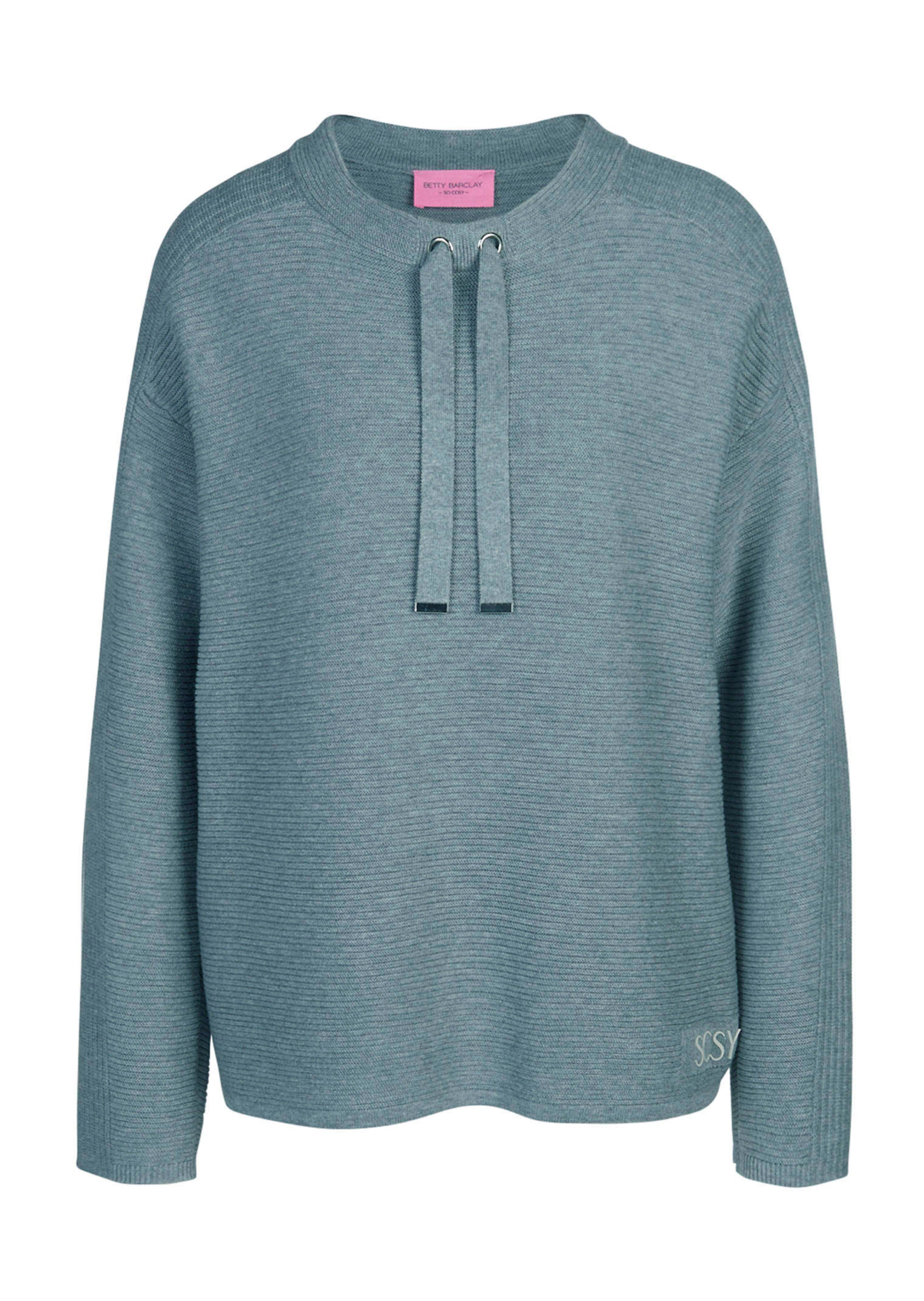 Der Strickpullover von BETTY BARCLAY vereint feminine Eleganz mit sportiven Elementen. Den Rundhalsausschnitt mit Tunnelzug schmücken dekorative Bindebänder. Die lässige Passform mit überschnittenen Ärmeln sorgt für einen entspannten Look. Edel wirkt dagegen der hochwertige Materialmix, der sich herrlich weich auf der Haut anfühlt. Länge in Gr. 38 ca. 60 cm. Styling-Tipp: Ein tpyisches Freizeit-Piece, das mit einer aktuellen Wid-Leg-Jeans und Sneakern besonders gut zur Geltung kommt.