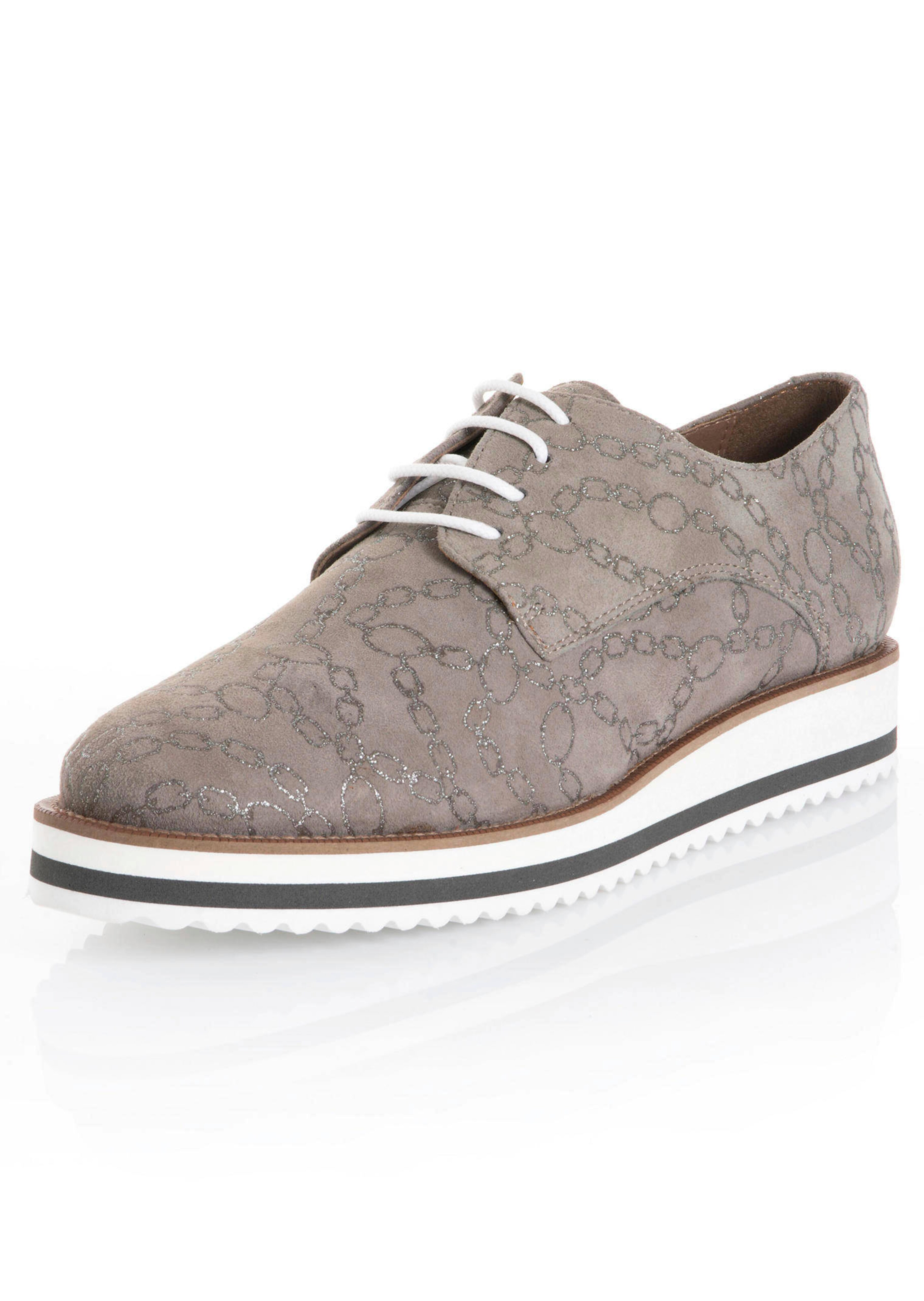 Ces chaussures à lacets en cuir velours de chèvre souple sont idéales pour mettre en valeur votre style classique. Elles se distinguent par leur motif chatoyant en forme de chaîne. De plus, ces chaussures à lacets sont ultralégères au pied, ce qui les rend très confortables. Hauteur du plateau dans la pointure 37 : env. 3 cm, devant env. 2 cm. Doublure, semelle de propreté et semelle extérieure en synthétique. Dans la boutique en ligne Alba Moda, vous pouvez commander ces chaussures à lacets confortablement chez vous en un clic de souris !