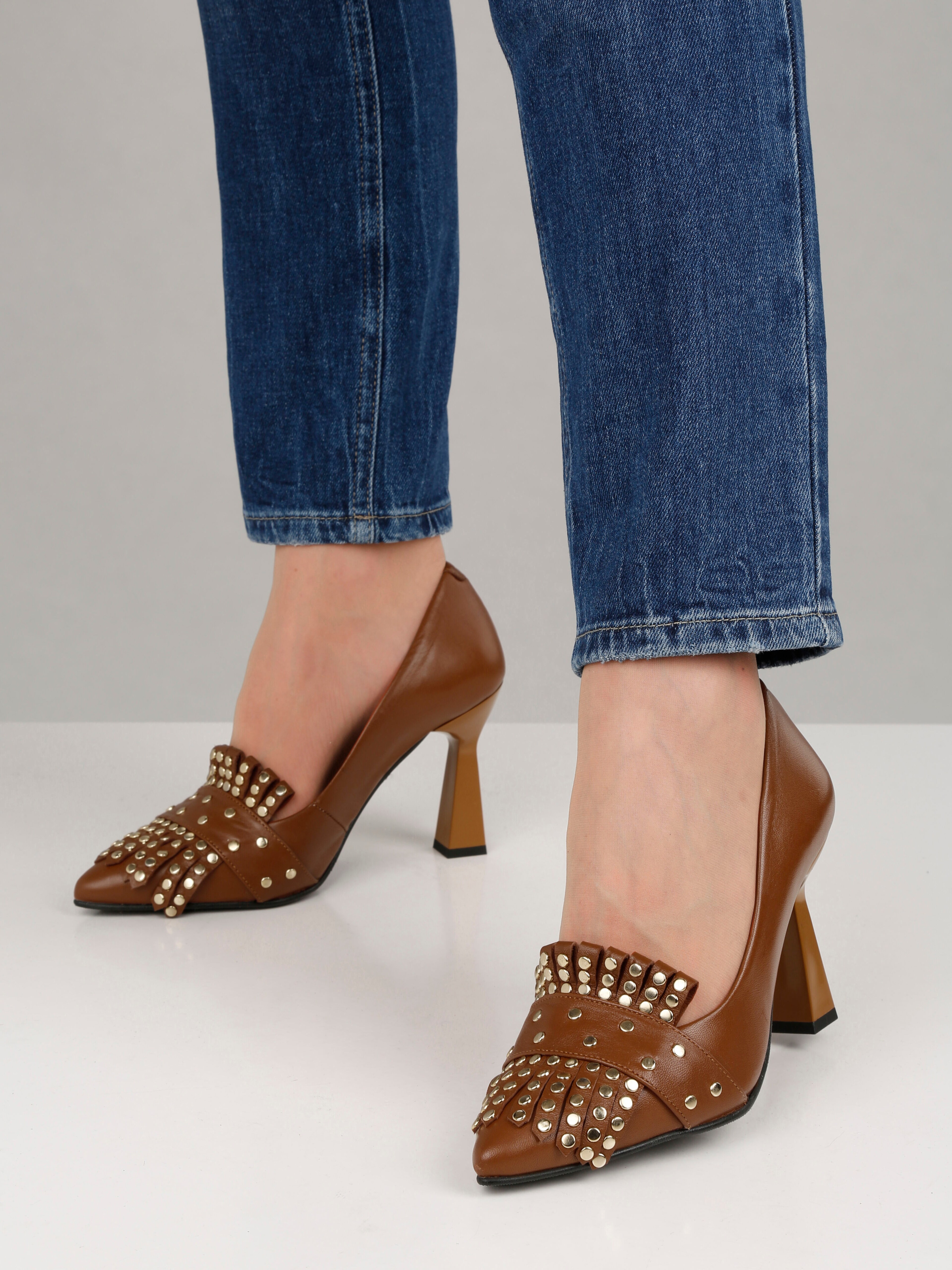 - Lanière à franges à la mode avec rivets, Doublure et semelle de propreté en cuir, Fabriqué au Portugal, Facile à enfiler et à enlever, Semelle de propreté rembourrée