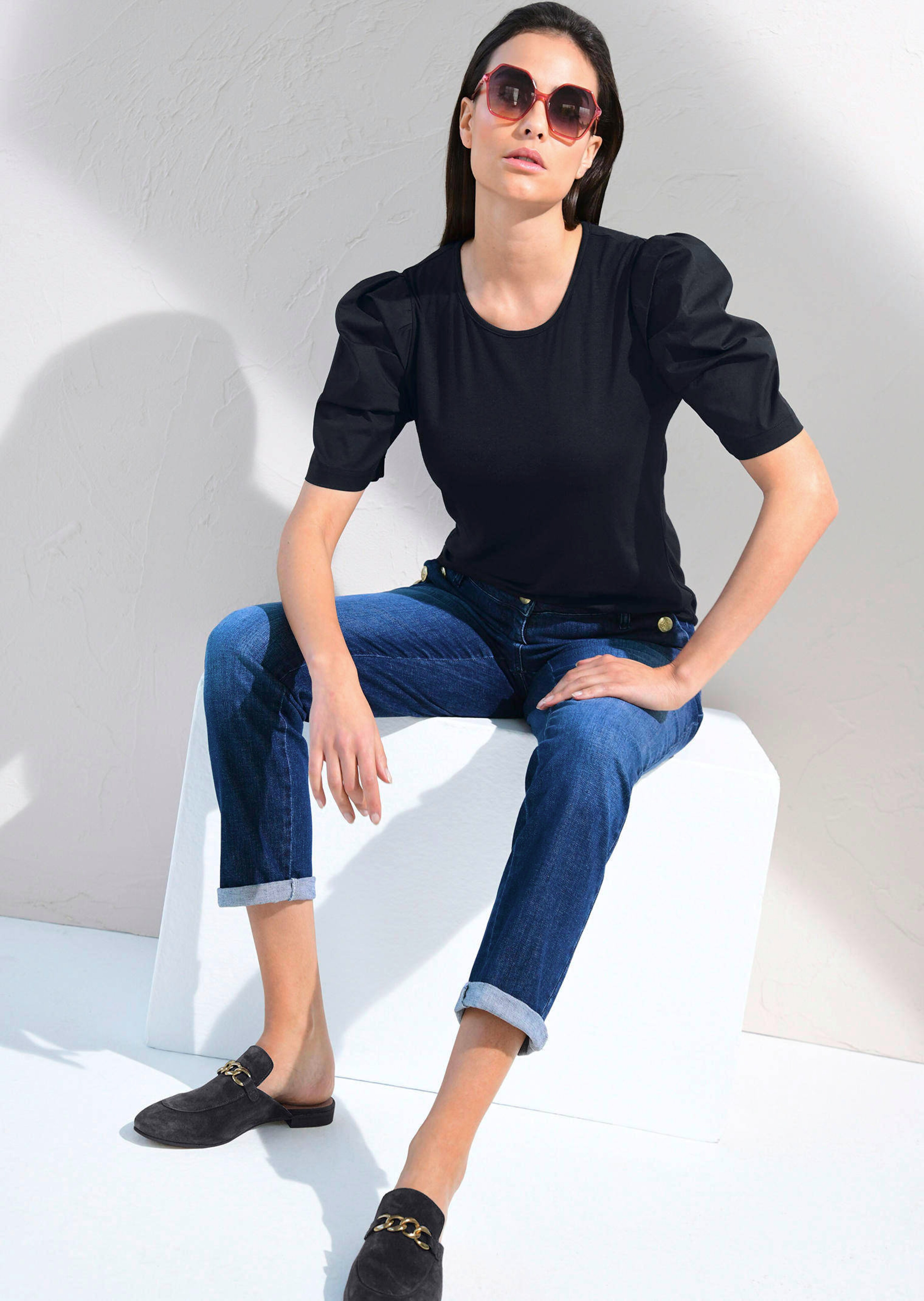 Il possède une encolure ronde. Sa forme enveloppante est particulièrement flatteuse. Manches bouffantes mi-longues avec une finition droite. Le tissu utilisé est le coton, un matériau facile à entretenir et la viscose. Ce n'est qu'une des nombreuses offres - commandez tout de suite ce t-shirt de loisirs d'Alba Modag et faites-le livrer chez vous en toute simplicité.