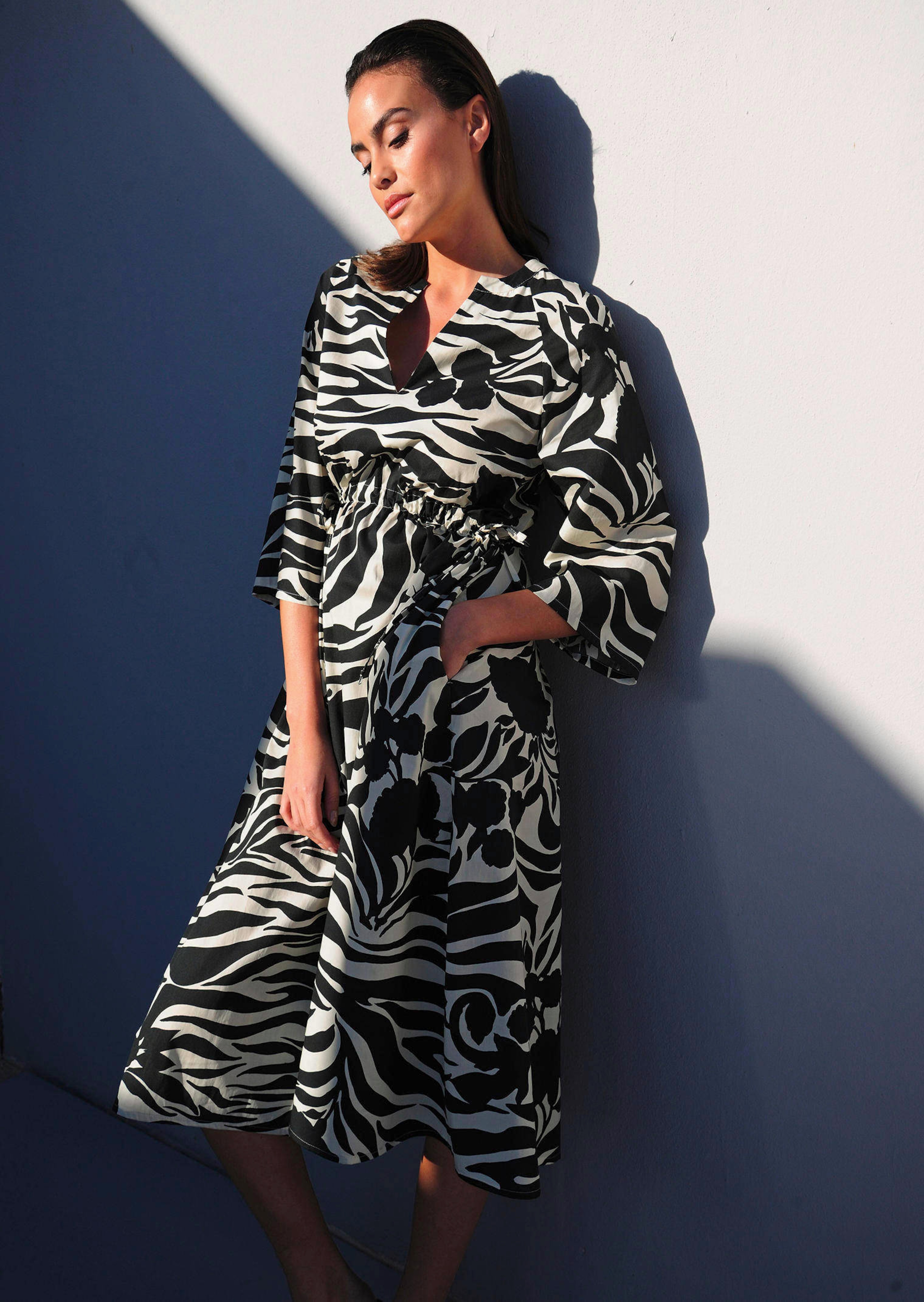 Les robes maxi sont de superbes it-pièces pour l'été ! Elles ont une coupe très élégante et une coupe décontractée. Comme cet exemplaire d'Alba Moda. L'imprimé floral, le motif graphique et la ceinture à nouer sont particulièrement remarquables. Elle possède une encolure en V. Grâce à sa coupe qui épouse la silhouette, elle est particulièrement flatteuse. Manches 3/4 longues avec extrémité droite. Avec des poches. Le tissu utilisé est le coton. Pour que votre robe soit parfaitement mise en valeur, il faut bien sûr une paire de chaussures assortie. Si votre look est plutôt élégant, choisissez une paire dans la teinte assortie. Plus le contraste est fort, plus votre tenue sera tendance, mais aussi voyante. Commandez la robe maxi d'Alba Modabe dans notre boutique en ligne et votre nouvelle pièce préférée sera bientôt chez vous !