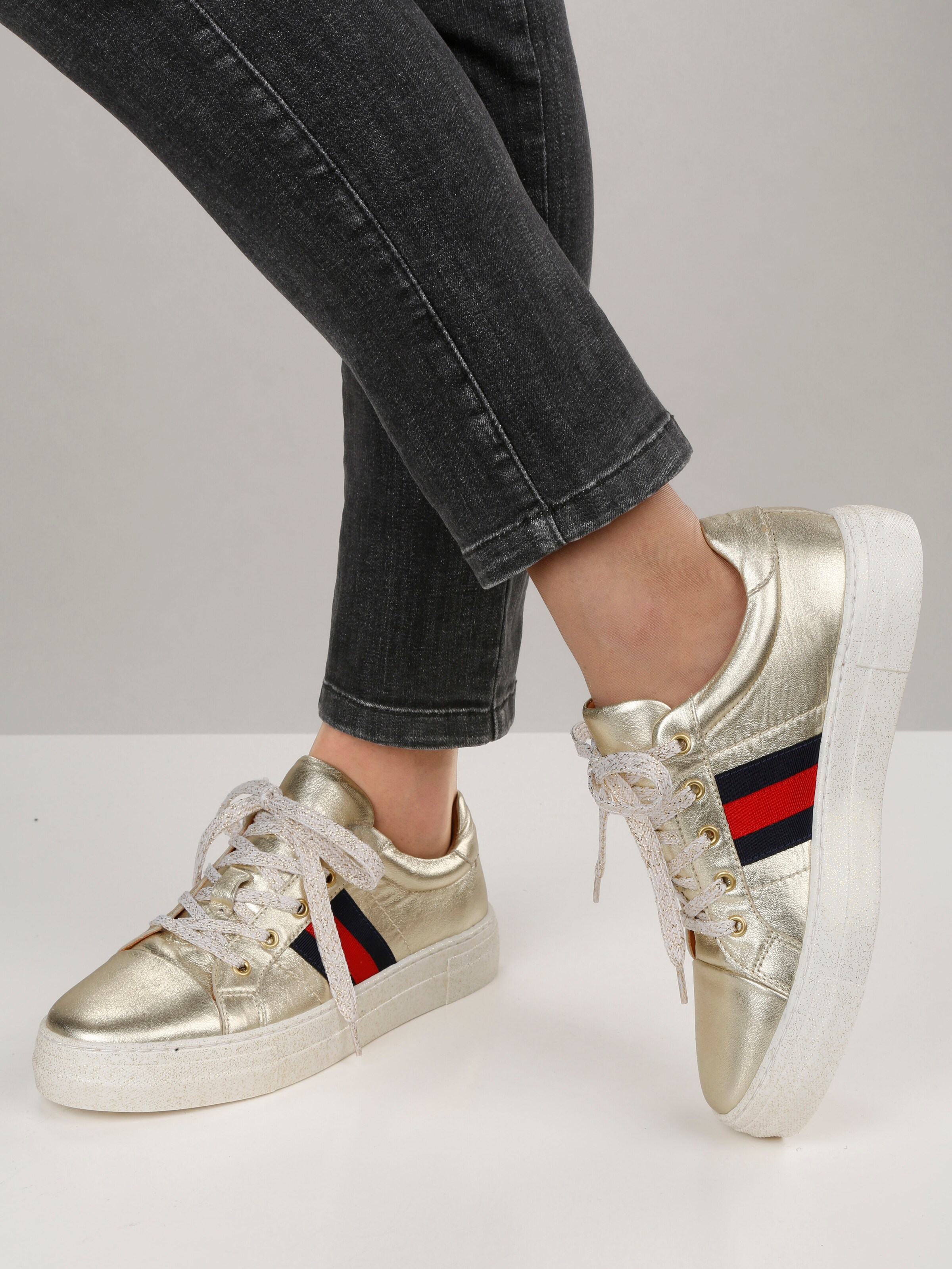- Languette rembourrée, Avec application de rayures à la mode, Semelle de propreté amovible, Fabriqué au Portugal, Cuir très souple